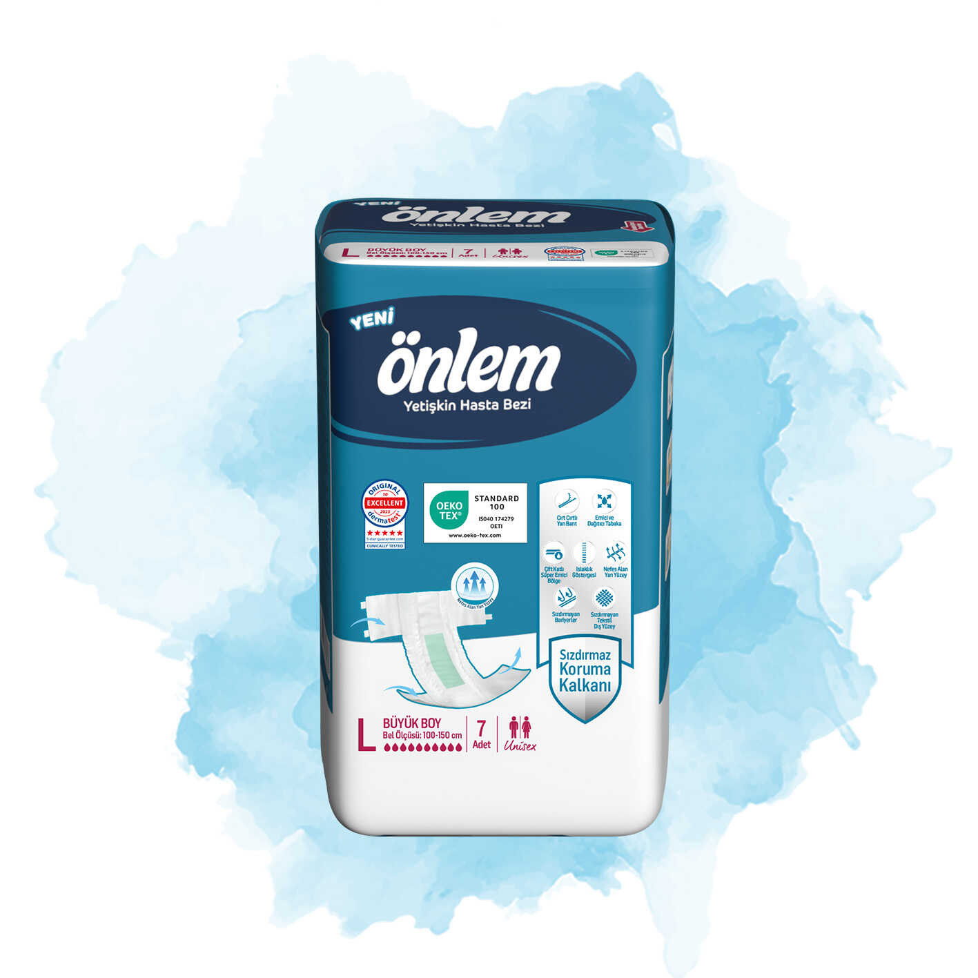 Önlem Yetişkin Hasta Bezi, sızdırmaz koruma kalkanı sayesinde idrar kaçırma sorunu yaşayanların kendilerini güvende ve kuru hissetmelerini sağlar. Alman Dermatest Laboratuvarları’nda yapılan klinik testler sonucu en üst seviye olarak belirlenen ‘5 Star Premium Segment’ (5 yıldızlı üstün segment) derecesiyle kullanıcıların cildini özenle koruduğu kanıtlanmıştır.